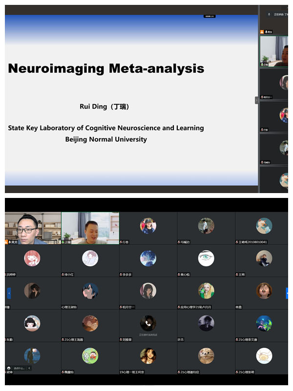 为落实“三全育人”理念,营造良好学习氛围,激发学生的创新精神与实践能力,人文与管理学院于11月21日和27日分别举办两场“心青年”学术论坛。北京师范大学认知神经科学与学习国家重点实验室心理学博士后、我校2016届应用心理学专业硕士毕业生丁瑞和国家级实验教学示范中心博士李露分别作题为“Meta-analysis of neuroimaging data:introductions and tutorials”和“心理学研究设计与分析:中介、调节模型”的专题报告。心理学教研室专兼职教师、在校研究生、应用心理学专业全日制本科生和辅修专业学生,以及“心青年”创新学习小组全体成员通过线上线下相结合的方式参加论坛,讲座由心理学教研室黄龙博士主持。