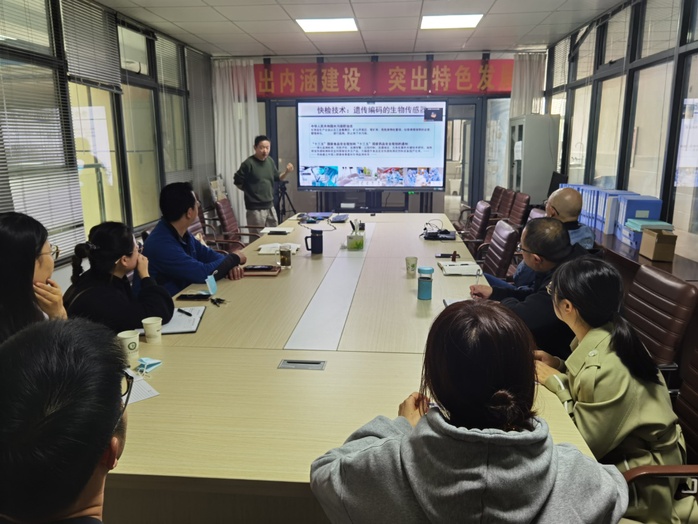 公共卫生学院高层次人才陈少鹏研究员结合自身的研究领域,以“遗传编码的生物传感器构建及应用”为题作学术交流报告。本次报告主要介绍了重金属传感器的构建,通过定向进化、大量建库、高通量筛选等方面对传感器专一性和灵敏度进一步优化,最后以检测头发、弋江区白马矿坑中汞含量等与实际紧密结合。报告结束,现场师生展开了热烈讨论,进行思想碰撞,产生了许多新的观点和想法。