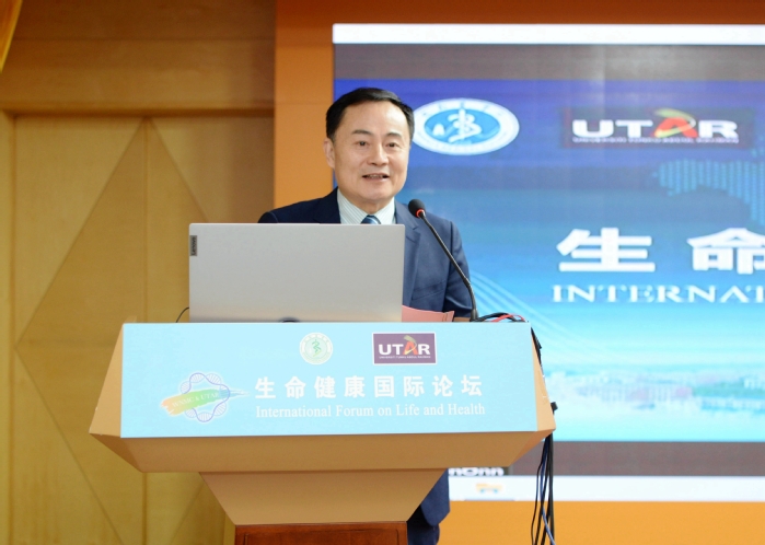上午9时,“生命健康国际论坛”在我校滨江校区图书信息楼三楼学术报告厅举行开幕式,廖圣宝致开幕辞。他代表学校向“生命健康国际论坛”的顺利召开表示热烈祝贺,向参加论坛的各位专家、老师、同学表示热烈欢迎和衷心感谢!廖圣宝简要介绍了我校的基本情况,指出医学高等院校肩负着面向科技前沿、面向人民生命健康,持续提升科技创新水平和人才培养质量的重要责任。希望通过举办此次生命健康国际论坛,各位专家、学者积极交流国内外研究动态,共享最新研究成果,共创双方良好学术环境和美好未来,深入推进科学研究和人才培养领域的合作,携手促进生命健康相关学科的发展。