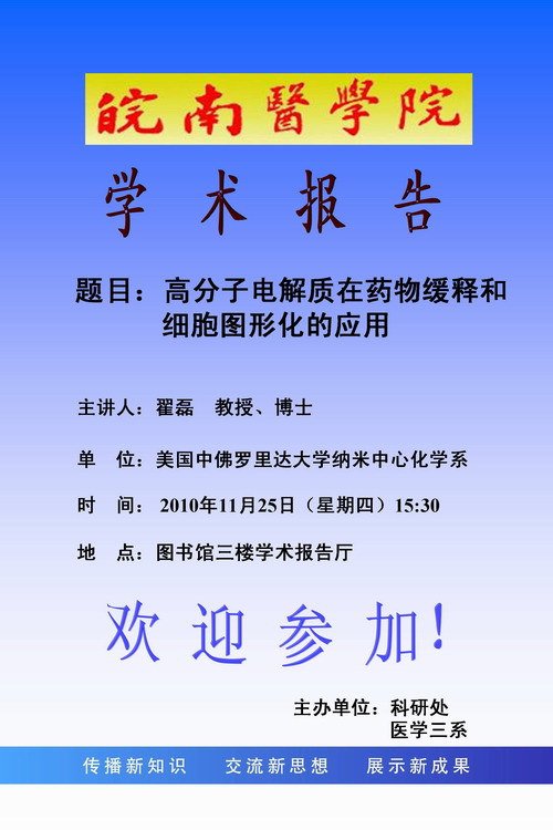 学术报告――高分子电解质在药物缓释和细胞图形化的应用