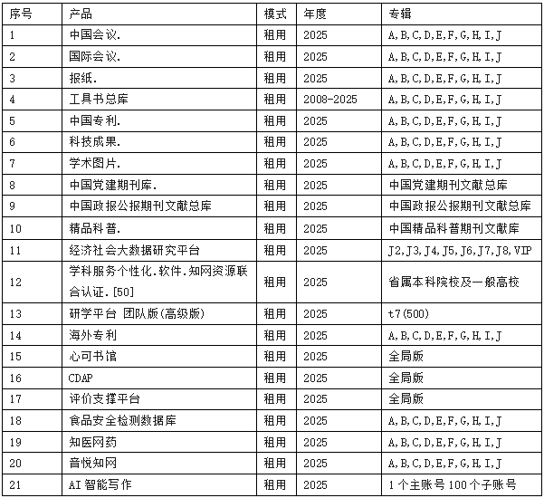 为了更好地服务教学科研和提供优质的信息资源,满足我校师生的需求,图书馆与CNKI签订试用协议,对我校开通CNKI中国知识资源总库的全库试用,详见下表: