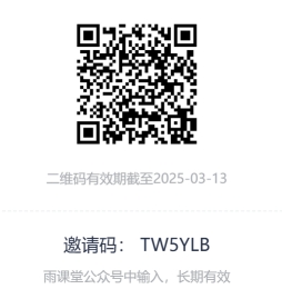 1.扫码加入活动班级:班级二维码有效期至2025年3月13日。班级邀请码无时间限制,在“雨课堂”公众号中,输入班级邀请码即可加入。